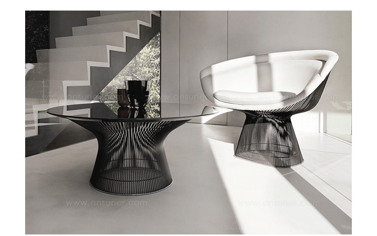 1966年榮獲 American Institute of Architects International Award 美國建築協會國際大獎的 Platner Chair,在設計師 Warren Platner 的創意下,將鋼絲雕塑轉化成一系列收藏級的傢俱,創造了現在被認為是當今時代的設計圖標。