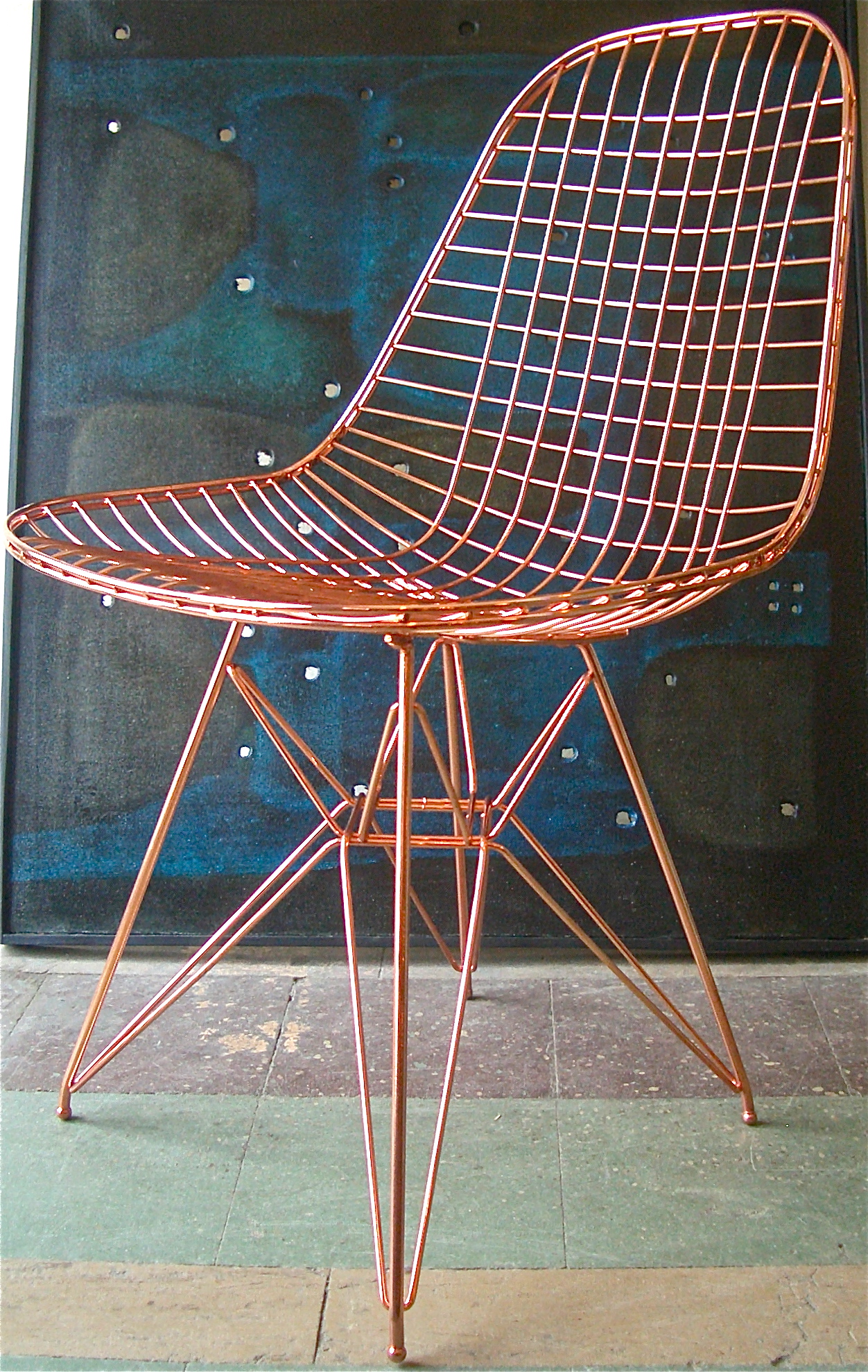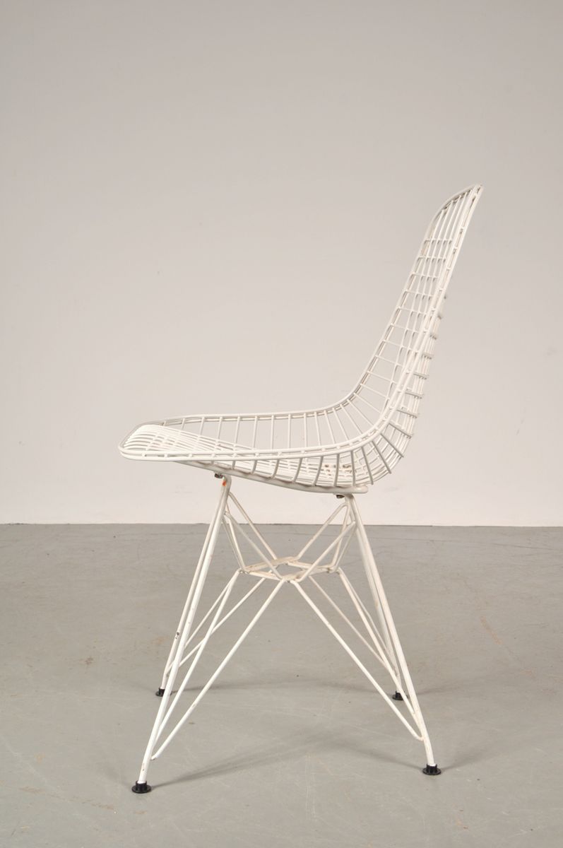 DKR 單椅結合了 Wire Chair 的網狀金屬椅座搭配鐵塔椅腳。