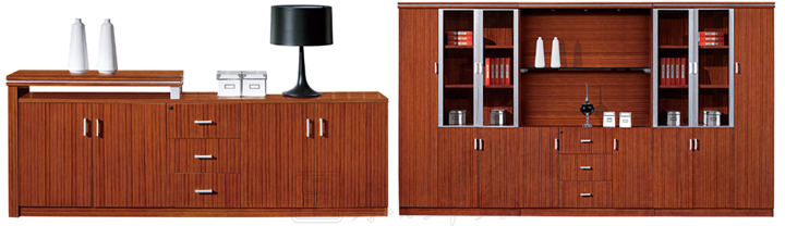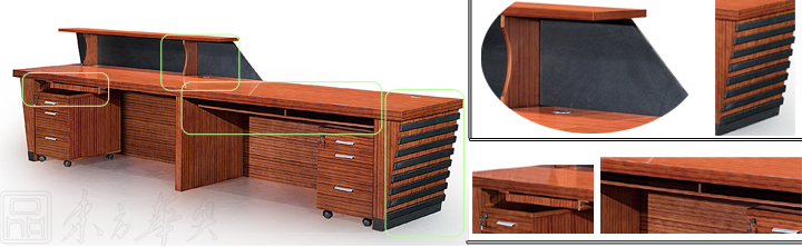 ※  木纹鲜明,配以银色为点缀,黑色亮光板装饰条,独特的线形设计韵含了一种灵气,使人眼前一亮。多元化的桌面设计能满足您各种组合变换、空间互补的要求。附助储物装置方面则备有流动式矮柜及档柜。