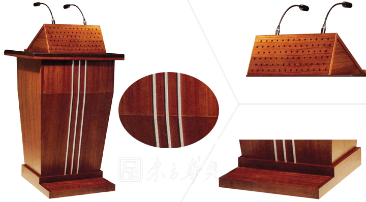 ※  上图为演讲台细节展示图,厚实的底座,可选配话筒等配件,主体佐以三色组合!