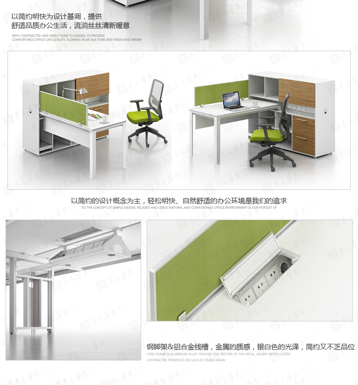 东方华奥潜心研究开发和主导整体的现代简约办公家具。肯特系列,简约、一目了然的淡定与从容在不经意间自然流露,整个设计体现理性的生活哲学。肯特设计的灵感来源于绿色田园,设计师用新绿与白色调营造一种时尚的明快与活泼,结合流畅的现代设计感,带来宽敞明亮的视觉享受。