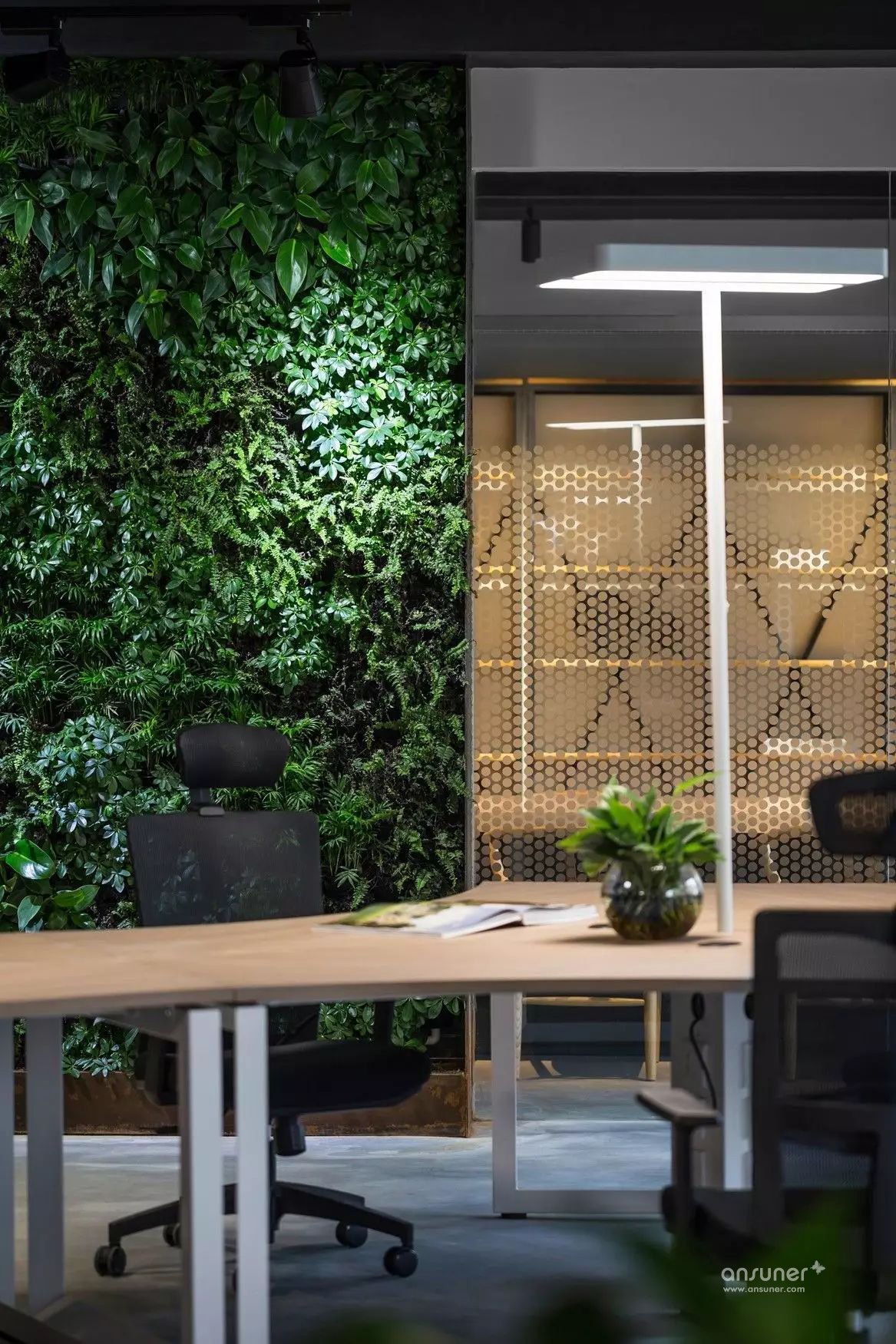 自然人文的办公区域,让室内与自然互相融合生长,疏解办公压力,使人身心愉悦。
