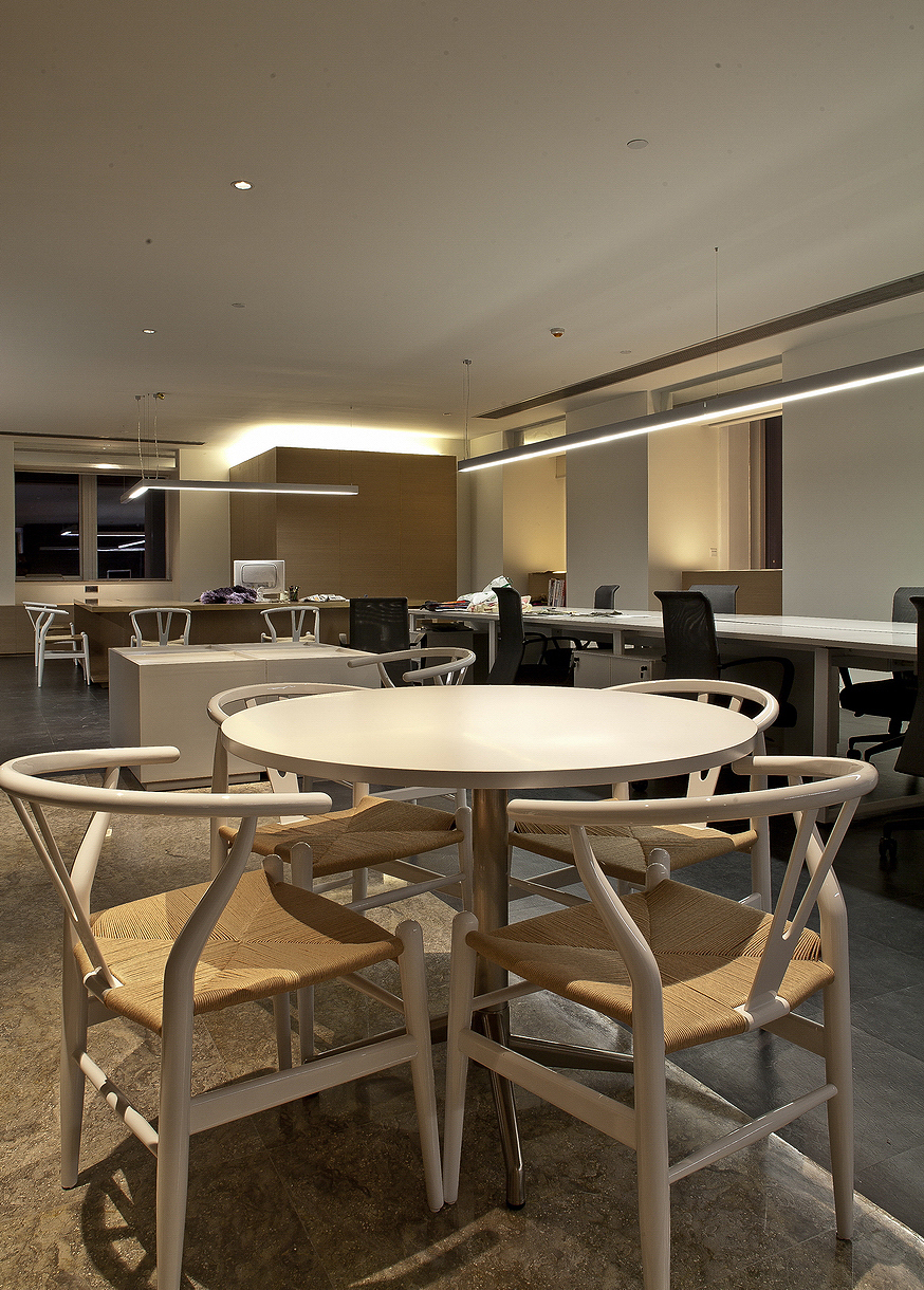 无论是下沉式设计部,开放式茶水间或者储书方式,灯光,家具,都是在构建聚落式场景,减少对着电脑呆滞的时间,能更随性的阅读书籍,调试衣物板式,选择物料,同时交流,分享设计。良性的工作环境,良性的竞赛及分享意识。
